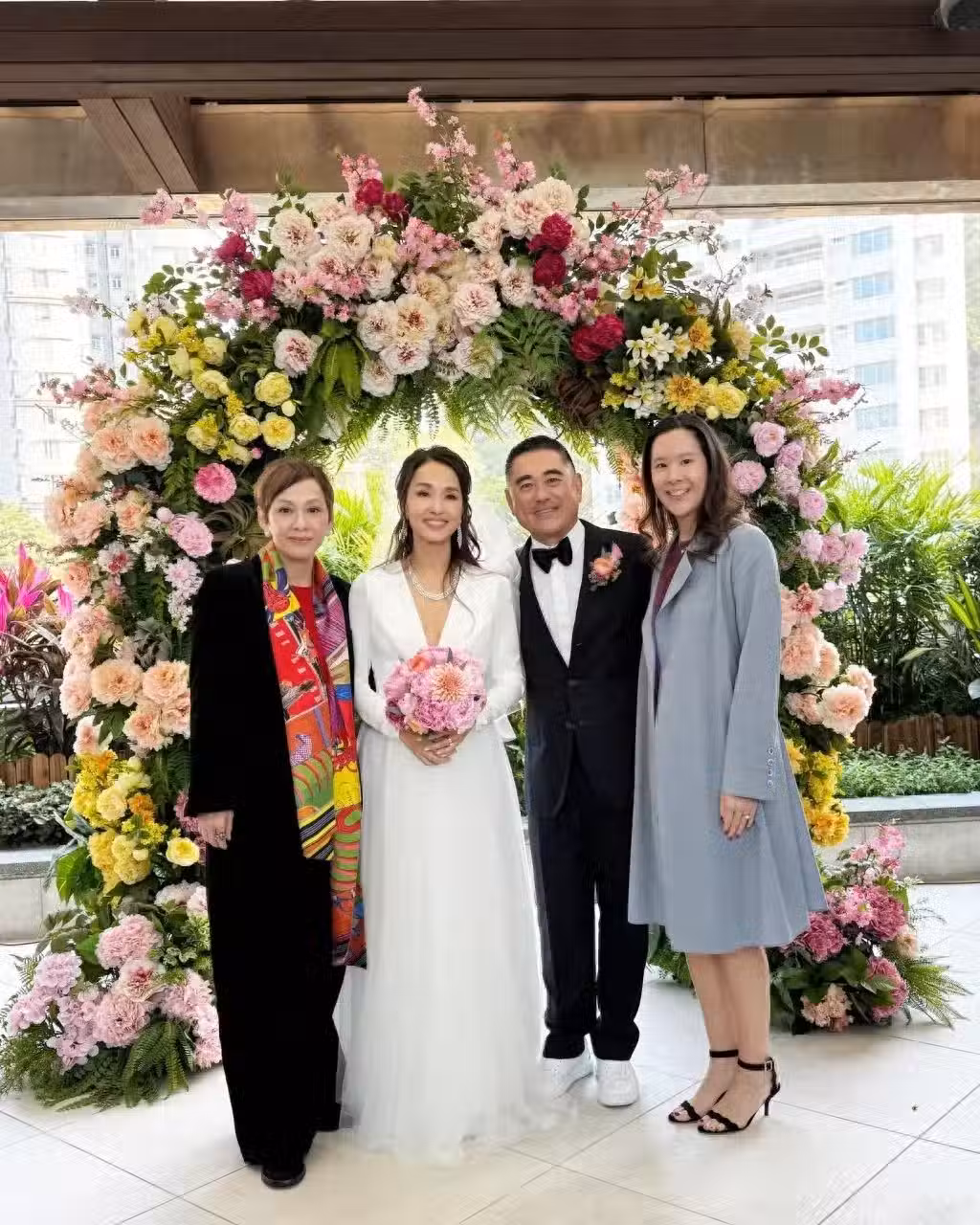 鄭嘉穎賀53歲富貴表妹再婚!一家赴宴兩子扮花童,周潤發前妻到賀