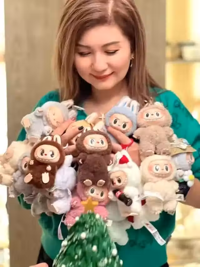而讓人意想不到的是,年屆65歲的TVB高層樂易玲也沉迷其中。近日,她在社交平台上傳了一張照片,照片中她抱著一堆Labubu合照,多得雙手都抱不住。引起大批網友投來羨慕的目光。而適逢聖誕節,他的兩位兒子也是Labubu迷,與媽媽一起和「小寶貝」們歡度聖誕。