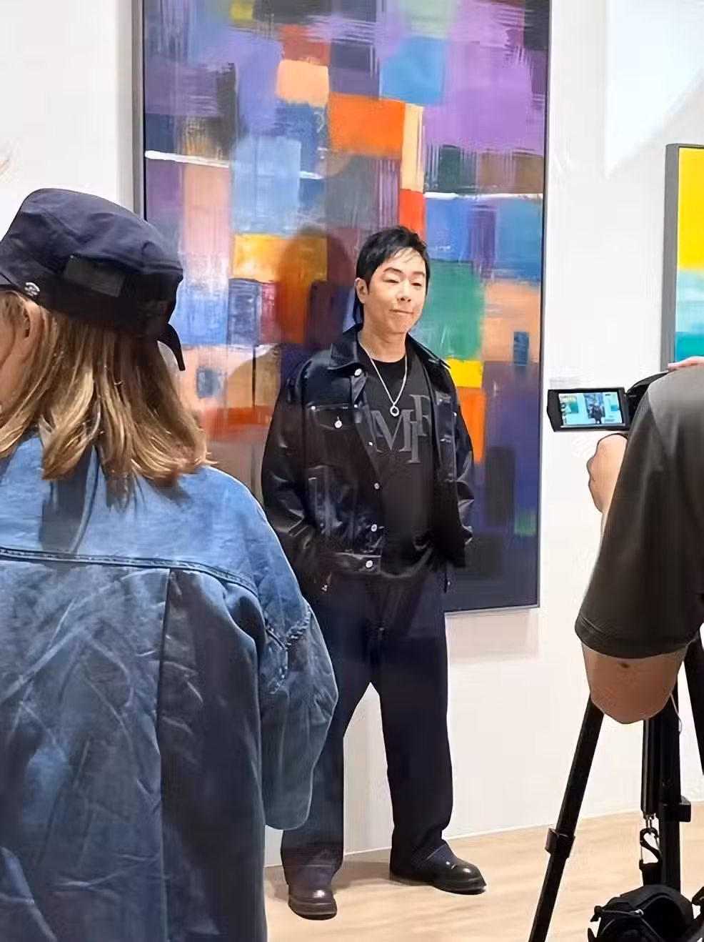 這是黃貫中的第一次畫展,他在香港舉辦,60歲的他,穿了一身黑色的寬鬆又帥氣的服飾,脖子上還戴著項鍊,站在鏡頭前面,又酷又颯。