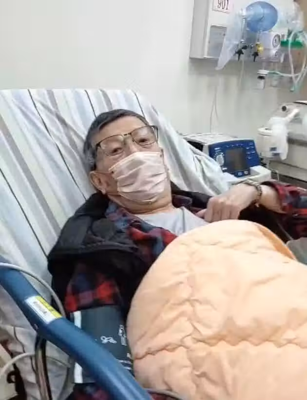楊繡惠在1月6日的直播中,場景是在醫院,她神情焦急,不時地往旁邊看,原來一旁床上正躺著她的父親阿西。