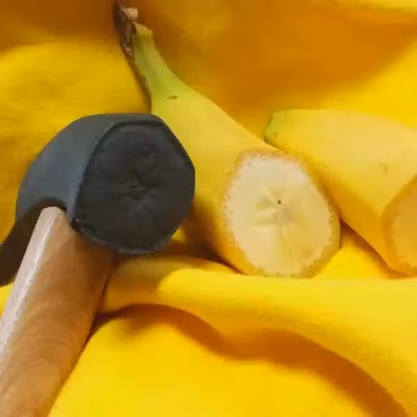 全長約20公分,重量約1.5公斤的「香蕉鐵錘DX」是真的可以拿來當鐵錘敲釘子,而且因為是鋼鐵製作的,所以可以在攝氏1千度的環境使用哦!