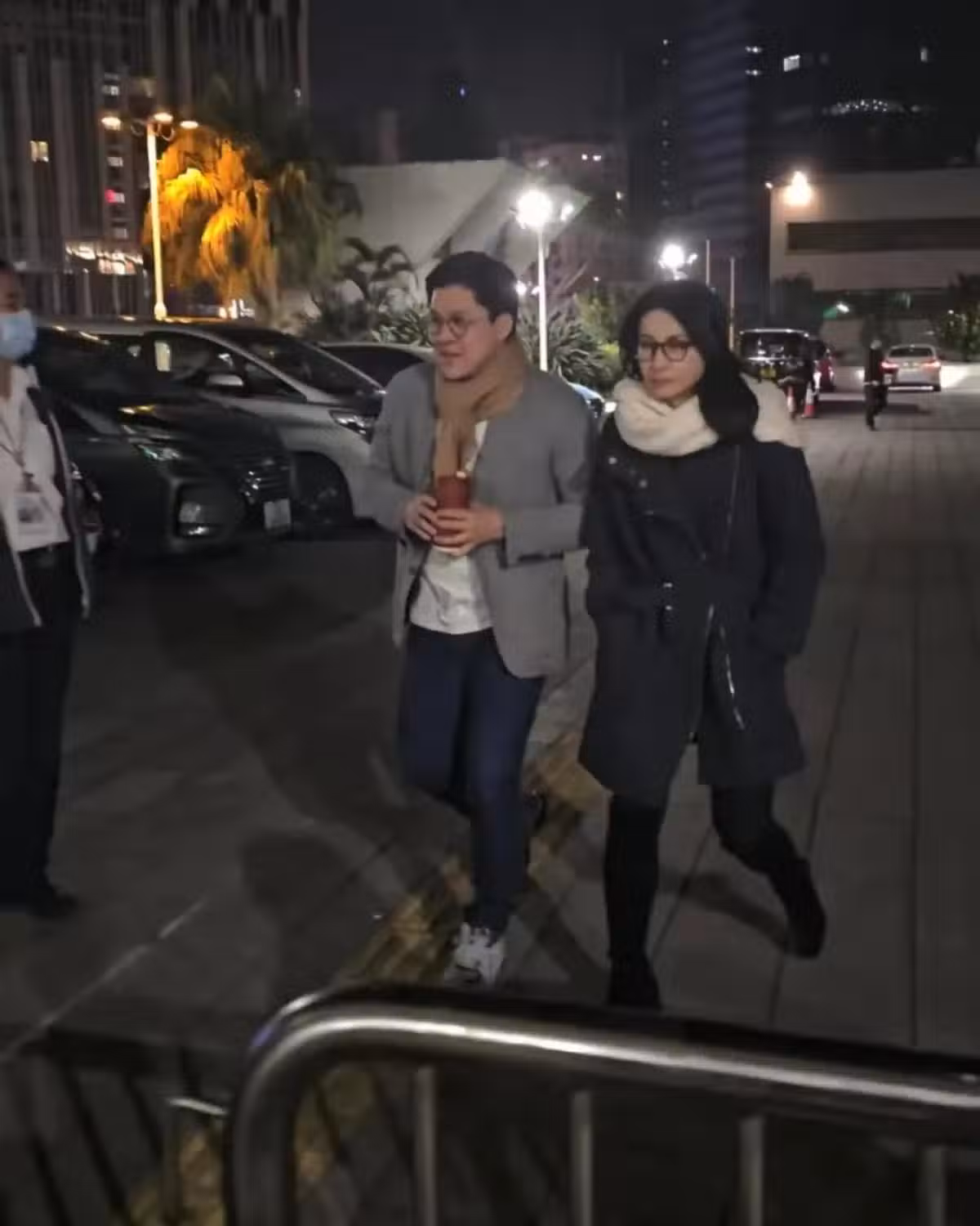 當晚,夫婦倆剛出現在停車場就引起了關注,只見霍啟剛身穿灰色西裝外套和牛仔褲,郭晶晶身穿黑色外套和緊身褲,兩人圍著同款不同顏色的圍巾,都戴著邊框眼鏡,以情侶造型出現,看起來十分般配。