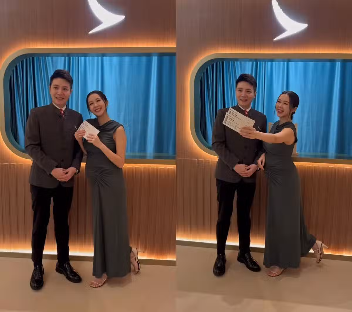 33歲麥明詩挺7個月孕肚開工!當機長老公面挽空少,興奮翹腳合影