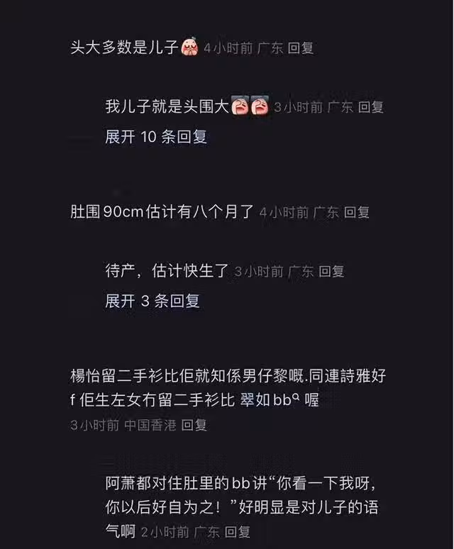 還有不少網民根據黃翠如在採訪中提過的兩個信息,一個是胎兒頭大,另一個是蕭正楠同寶寶講的話,猜測她懷的一定是個男寶寶,看著網民們一個個化身福爾摩斯,真的是令人覺得又搞笑又有趣。
