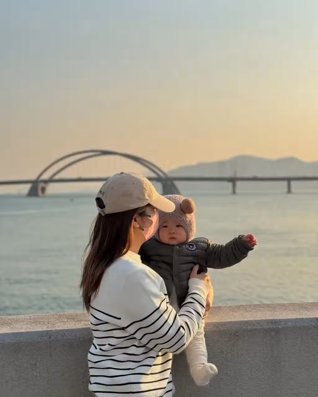 陳嘉慧於(12日)下午發帖寫道:「My little teddy bear(我的小小泰迪熊)」以熊仔來形容自己的女兒。她一共發布了3張照片,戴上帽子口罩、穿上條紋衛衣的陳嘉慧,於海邊抱著女兒,小公主的裝扮極其趣致。