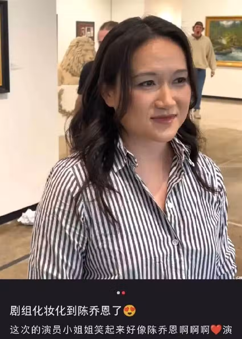 化妝師在貼文中寫道:「今天真是幸運,居然在片場偶遇了陳喬恩!」照片中,她與一位身穿戲服的女子親密合影。
