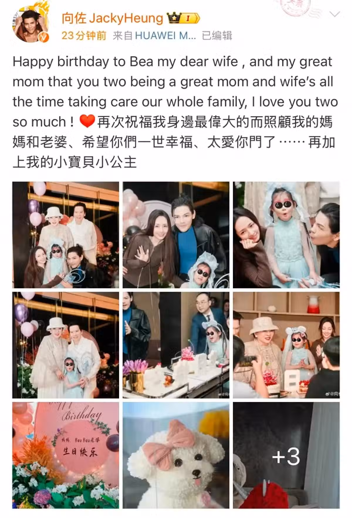 1月17日,向佐在社交平台曬出為媽媽向太以及老婆郭碧婷慶生的照片,並配文「再次祝福我身邊最偉大的而照顧我的媽媽和老婆、希望你們一世幸福、太愛你們了,再加上我的小寶貝小公主」。