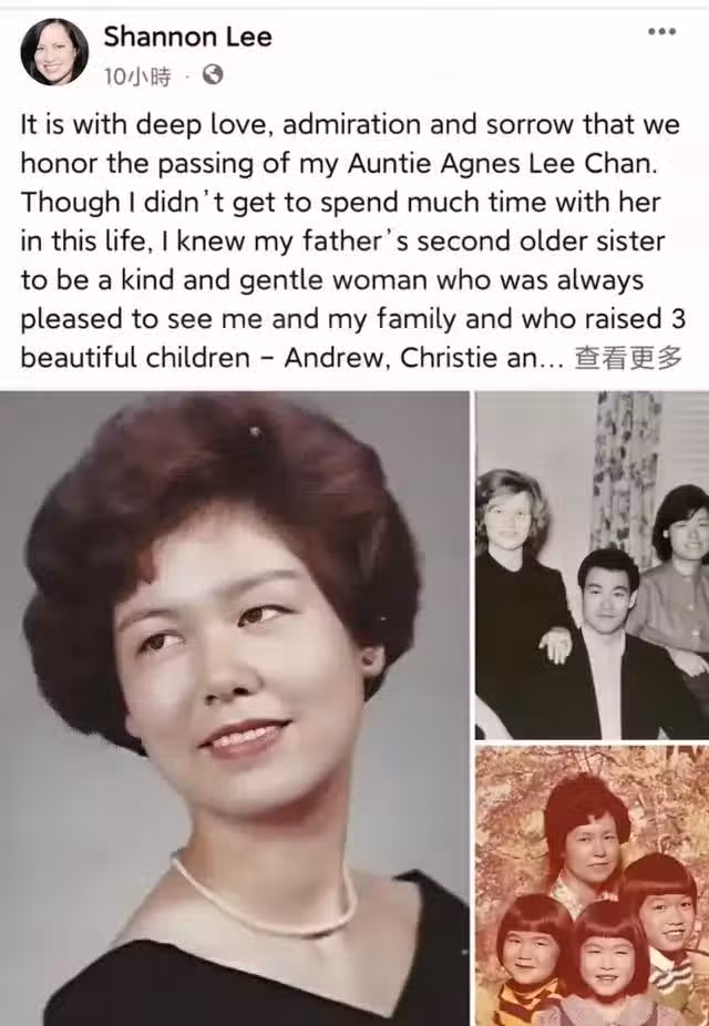 突傳死訊!功夫巨星李小龍二姐李秋鳳離世,姐弟倆五官輪廓相似!