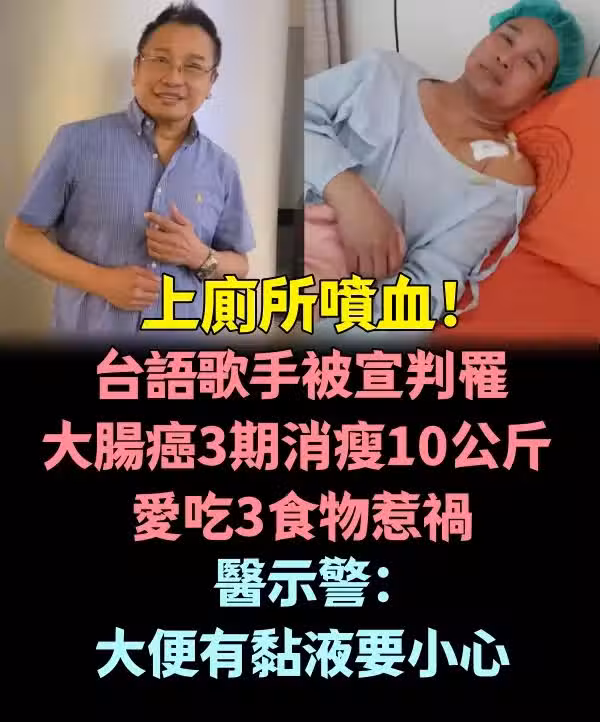 上廁所噴血 台語歌手「被宣判罹大腸癌3期」消瘦10公斤 「愛吃3食物惹禍」醫示警 大便有黏液要小心