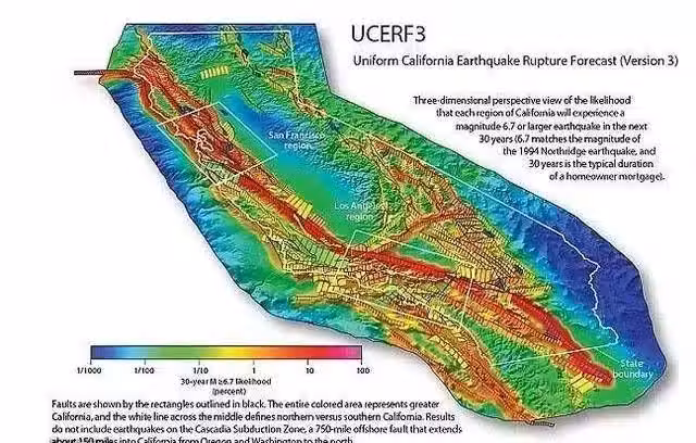 科學家們最為擔心的還是北美構造板塊和太平洋板塊之間的擠壓問題,加上近期太平洋板塊的偏移情況,地下的大片地殼很有可能會在擠壓中伴隨著旋轉,而加州的大陸邊界有不少地區就在這片地殼之上。與此同時,這一地區的海底斷層帶已經出現了向上抬起的情況,那麼下一步就會向聖安德烈亞斷層板塊一樣出現逆沖斷層情況,在這個擠壓過程中逐步上升是不可避免的,而這個俯衝帶隆起的地區甚至已經快要達到幾百公里。隨著這一系列的活動,美國加州地區的大陸架就會顯得十分狹窄,而且地下構造中活斷層占據了大半部分,科學家們十分擔憂未來在這一地區會發生更為大型的地震和海嘯。因為地震海嘯這些自然災害,一旦在內陸人口居住較多地區發生就會造成更大的損失。