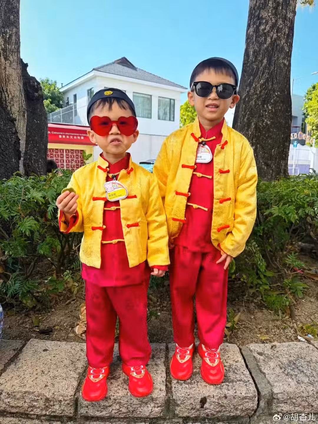 奕霖和弟弟奕宏真的很會拍照,各種凹造型好可愛,特別是戴上墨鏡,酷酷的好有范,看來有繼承到媽媽胡杏兒的表演基因哦。