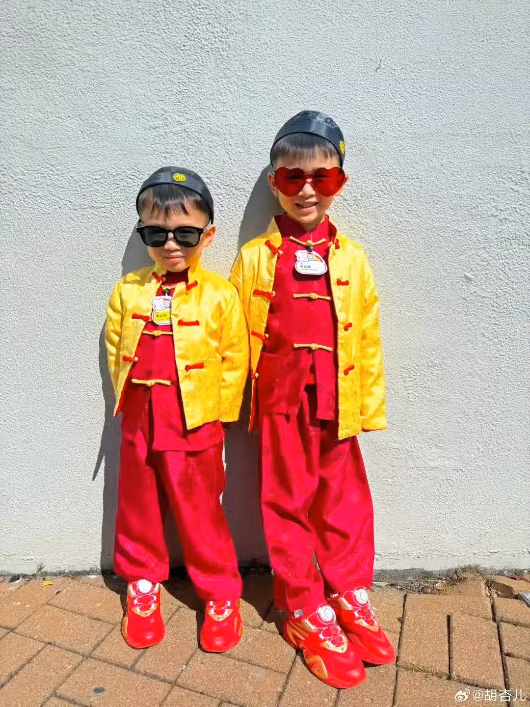 胡杏兒一家五口迎新年,三個兒子穿唐裝帥氣可愛,模樣似複製粘貼