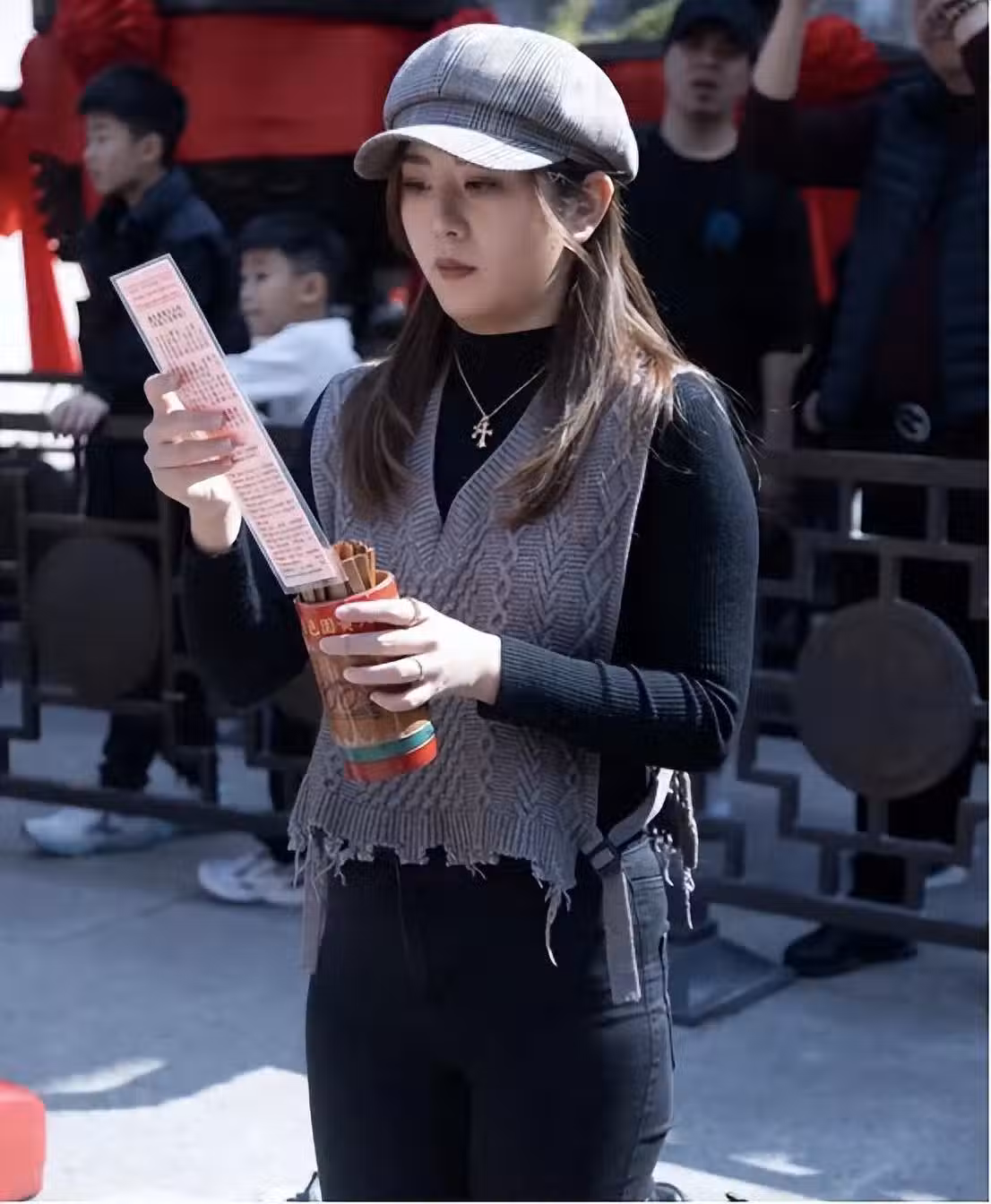 據她所說,她此次抽取的簽文雖是中平簽,但是據解簽的姐姐說還不錯,對此她表示自己此次就是專門來求事業,想看看事業的未來發展。