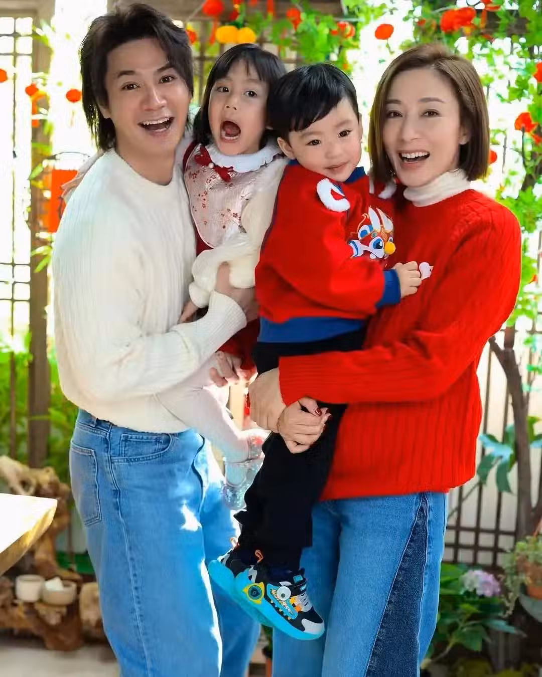 楊怡羅仲謙曬新年全家福,穿情侶裝恩愛甜蜜,一雙兒女顏值都好高
