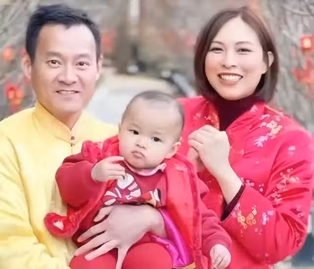 照片中,朱慧敏穿著喜慶的新年服裝,和老公、女兒一同出鏡,一家人在鏡頭裡非常溫馨、幸福。