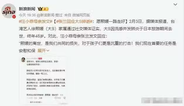 大S媽媽則通過好友王偉忠分享聲明,並曝光大S的最後心愿,以及長達300多字的聲明。