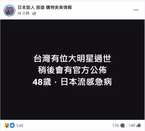 ▲臉書粉專昨日爆料大明星死訊,一開始林志玲也被當作猜測對象。(圖/翻攝自粉專)