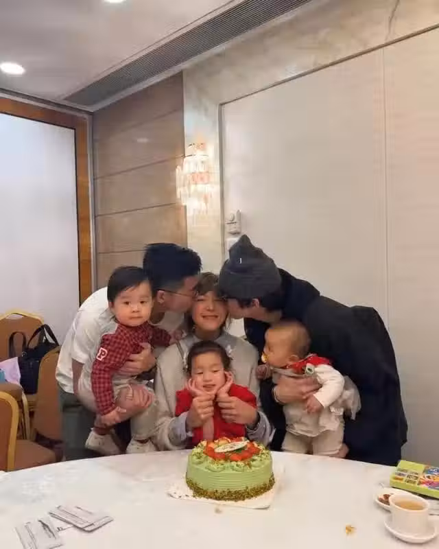 她在社交平台留言表示,以前過生日,哥哥弟弟總是她的左右護法,臉頰留給他們一人一邊。現在family tree已經壯大,親臉頰的指定動作變得越來越熱鬧了。