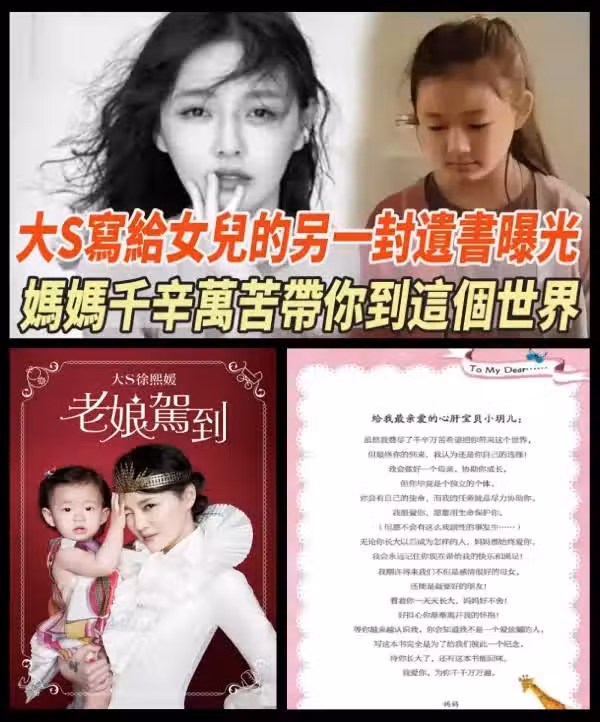 大S猝逝,大S生前「寫給女兒的信」曝光 ,網友看哭了!