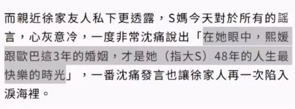 在徐媽的眼裡,熙媛跟著歐巴這3年的婚姻,才是她48年人生之中最快樂的時光。