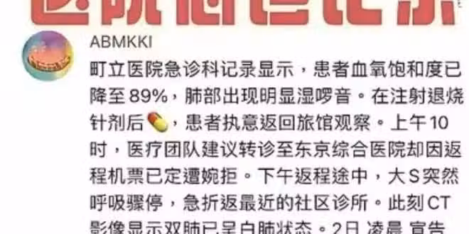 既然台媒公布的說法無誤,那麼通過現有資料再去了解,卻發現大S在日診療期間,身體狀況一度堪憂。