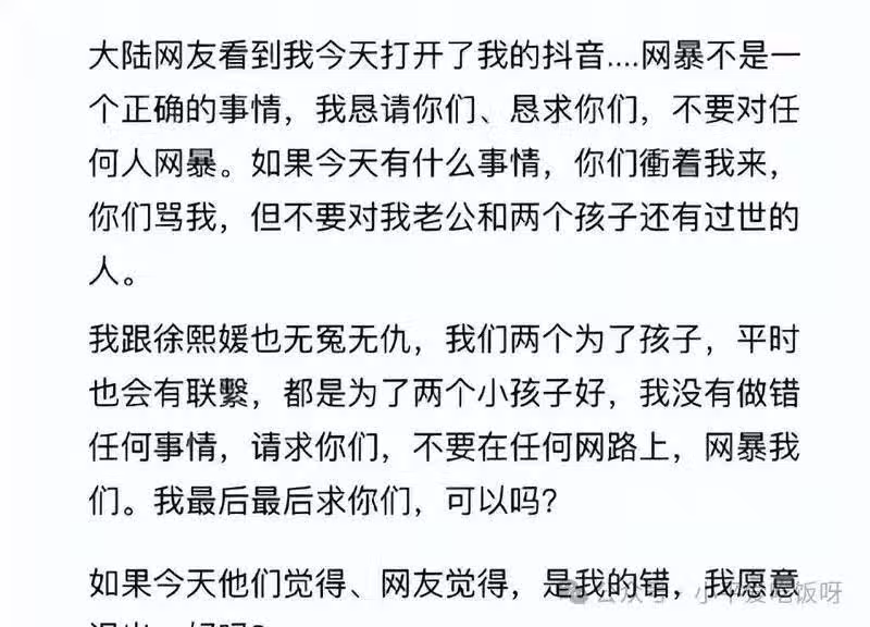 她輕輕拭去淚水,繼續說道:「汪小菲此刻心情沉重,仿佛失去了生活的色彩。