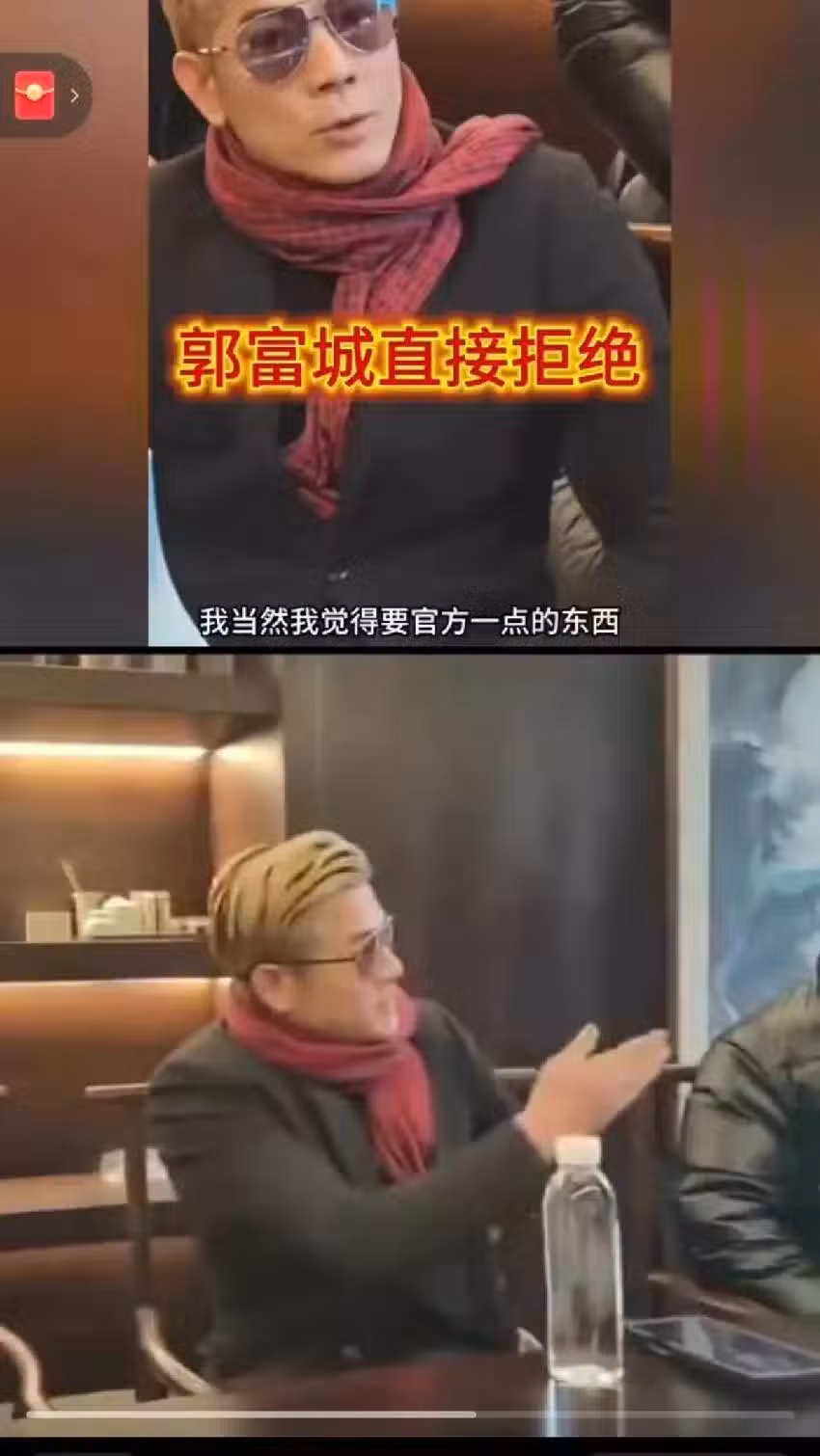 聽到這句話,郭富城臉立馬黑了下來!當下就有些生氣!但是他並沒有發作,而是直接拒絕道:我覺得這種事情應該官方一點!我覺得你們這樣做不合適,我們應該尊重一下我的經紀公司!