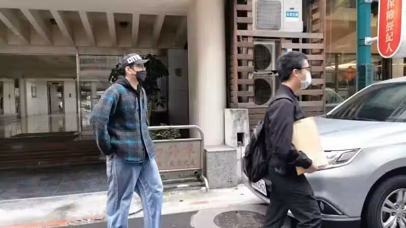 記者在路口拍到王大陸被帶走的畫面,他打扮休閒,頭戴鴨舌帽、黑色口罩,看到記者後保持沉默,一言不發。--