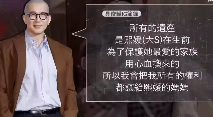 當時都猜測是具俊曄代大S打官司,因為他是第一繼承人,但如今台媒報道稱他似乎有回韓國老家的打算,此前他還發文稱要放棄繼承遺產,如今看來似乎是不想趟S家的渾水。