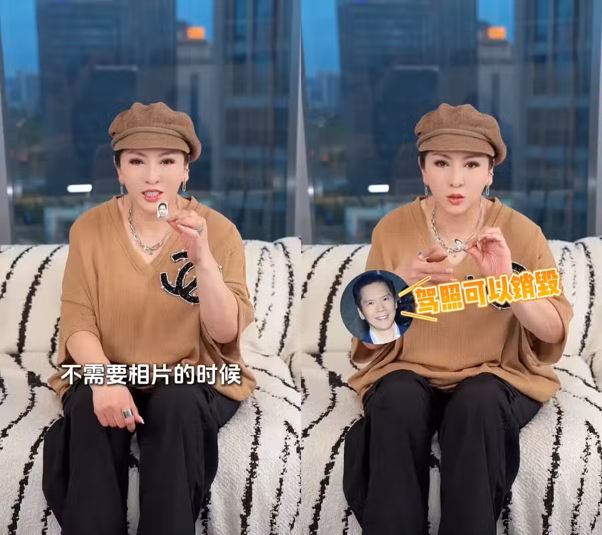 影片中可以看到化上精緻妝容的向太頭戴淺棕色貝雷帽,身穿V領Chanel駝色寬鬆上衣及黑色長褲,她手持一張照片並坐在沙發上說:「這張照片呢,是我27歲的時候我保留的最年輕的照片,為什麼呢?因為我跟先生去印尼做生意,半年沒有回台北,房子本來是叫我妹妹幫我看看,可是當我回到家的時候,我家是空的,我所有的照片都沒有了,小時候美美的照片都沒有了,空無一物。」