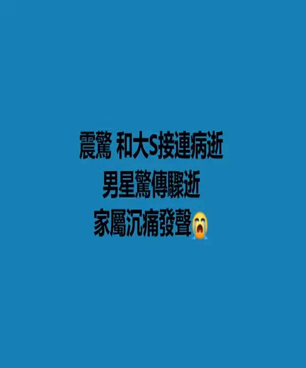 震驚!和大S接連病逝 男星驚傳驟逝 家屬沉痛發聲!