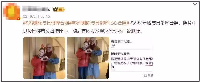 大S去世,具俊曄和S家之間唯一的紐帶也不在了,尤其當年S媽並不同意大S和他結婚,大S去世後S媽還刪掉了和具俊曄的合影,看上去S家和具俊曄兩方之間的相處很微妙。