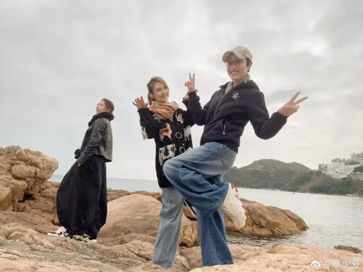 蔡少芬曬和陳法蓉洪欣相聚,閨蜜感情超好,自拍照跟路人視角一樣