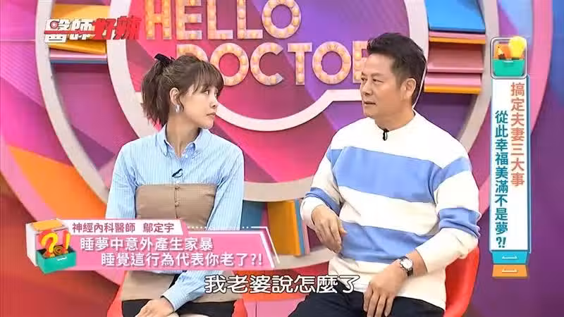 聽到來賓一一分享,徐乃麟也透露:「我老婆說我半夜睡到一半,突然對她揮拳。」這讓大家聽了錯愕不已,平常寵妻的乃哥怎麼可能做出這種事,沒想到神經內科醫師從中發現不尋常,急忙警告:「恐怕是神經退化性疾病的警訊!」例如帕金森氏症、失智症等,嚇得徐乃麟急忙否認:「我沒有這些疾病!這段給我剪掉!」逗趣反應讓現場笑翻!