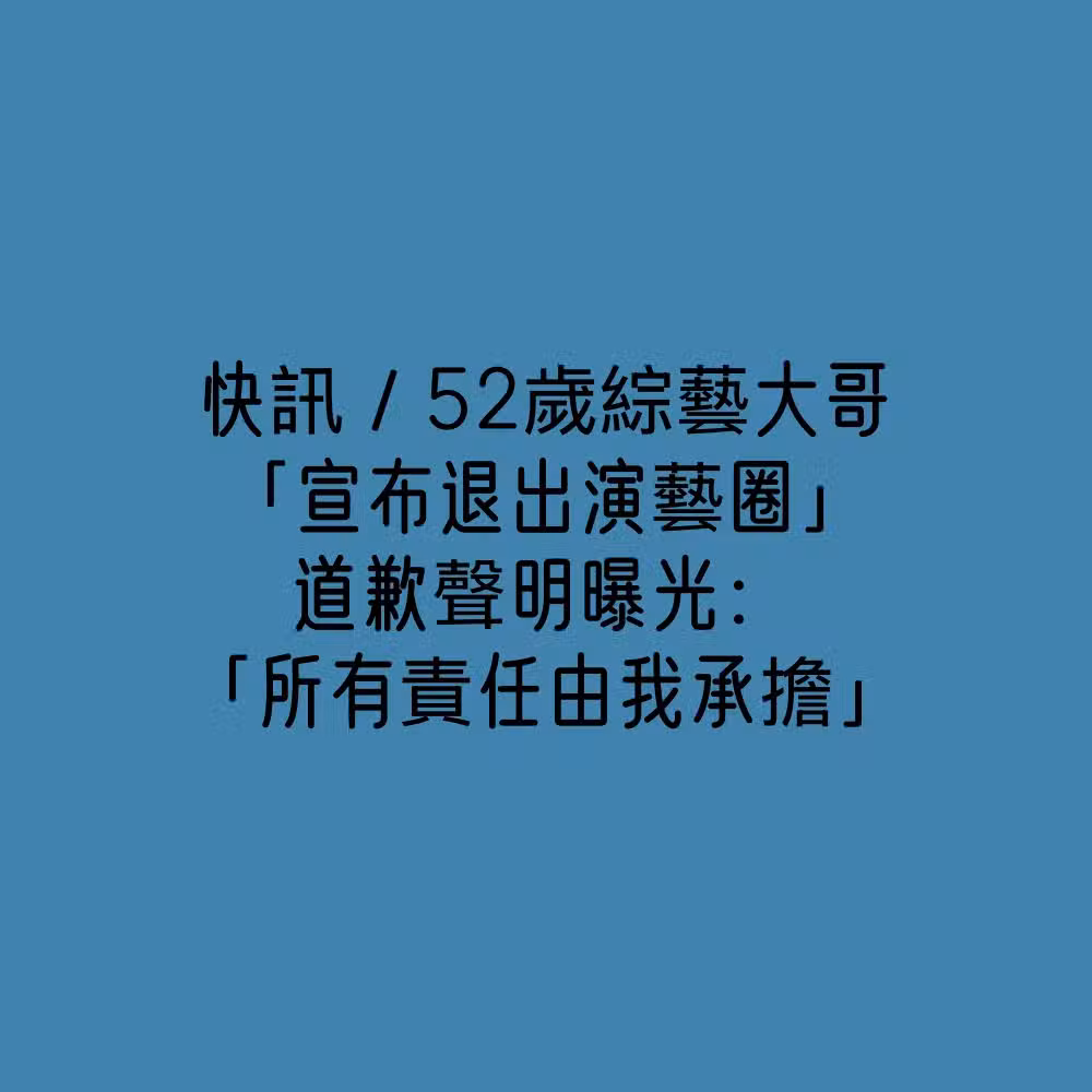 快訊/52歲綜藝大哥「宣布退出演藝圈」道歉聲明曝光:「所有責任由我承擔…」