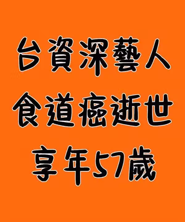 台資深藝人食道癌逝世,享年57歲