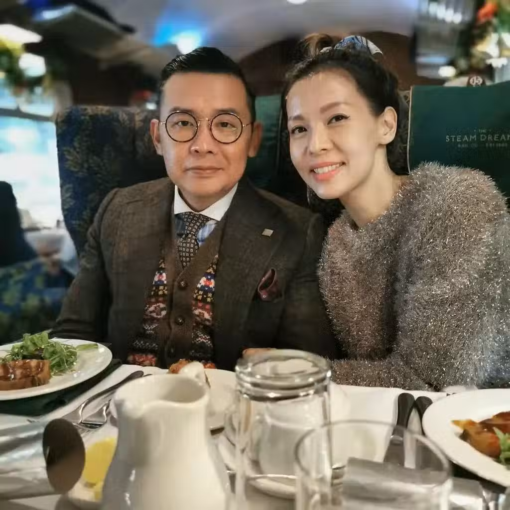 雷頌德移居英國做設計師,結婚18周年街邊留影,妻子穿紅袍好喜慶