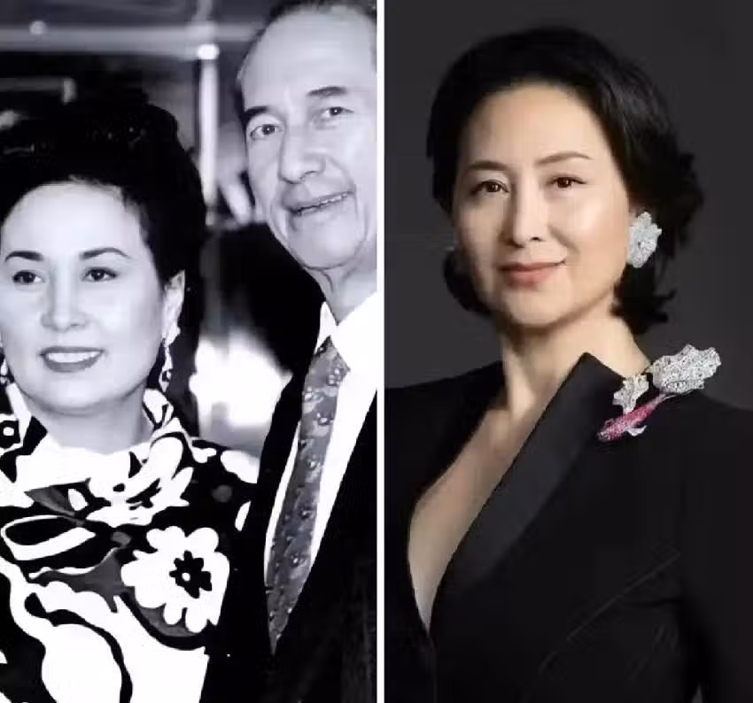看以上兩張對比照圖,左圖是藍瓊纓和賭王何鴻燊的合影,右圖是何超瓊,這樣對比一看,何超瓊和自己的母親長的也是蠻像的,尤其是上半臉。