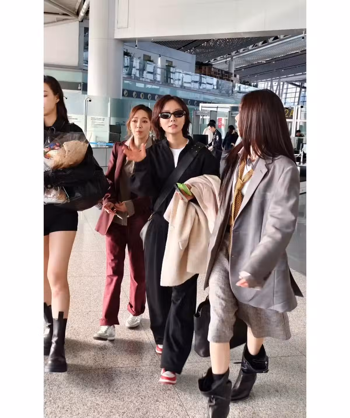 這次在機場,其他姐姐們的穿搭其實都很出彩,雖然都是簡單基礎款的休閒裝,但是在穿搭上總會有一點小心機和搭配的小巧思,這就讓全身的穿搭很不一樣了,更有時尚的感覺。