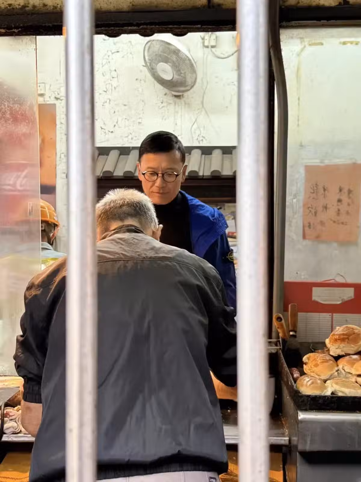 苗僑偉去的這家店,店面比較陳舊,他完全不在意,親自進到店裡去買豬扒包,一開始有不少人,他還很自覺排隊,有民眾認出他是大明星,讓他排在前面,他拒絕了對方的好意!乖乖地排隊!