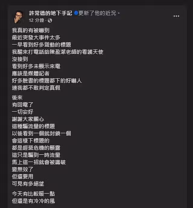 許常德發文。(圖/翻攝自臉書)