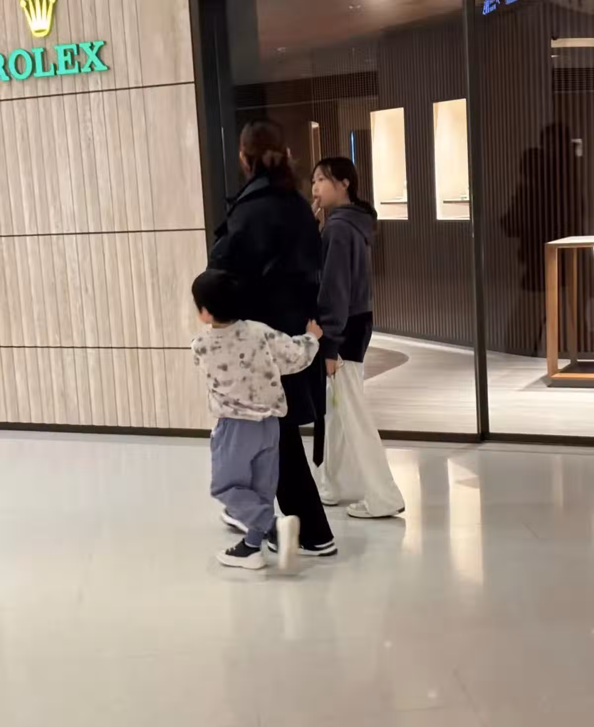 52歲蔡少芬香港西九龍逛商場,一邊牽著兒子,一邊和女兒聊天,畫面非常溫馨