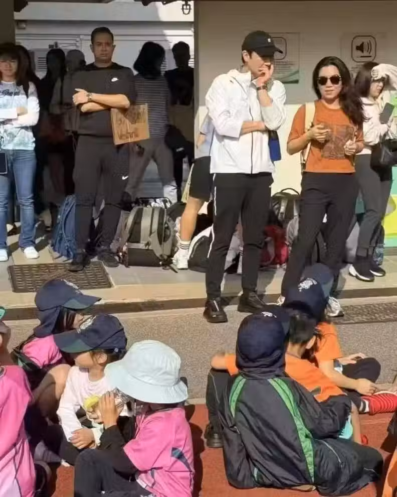 黎明夫婦陪女兒參加校運會,兩人同框好甜蜜,7歲女兒太像爸爸