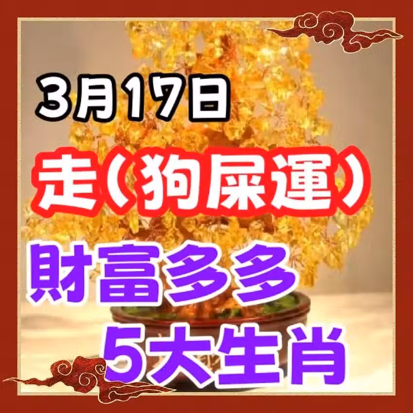 而在2025年3月17日這一天,有五大生肖將迎來財運爆棚的好運勢,甚至有機會走上「狗屎運」,在財富方面收穫滿滿。