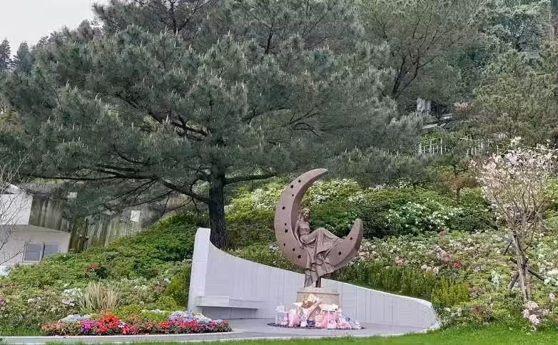 李玟的月亮女神雕像也一樣立在墓園裡,同樣是方便大家緬懷悼念。