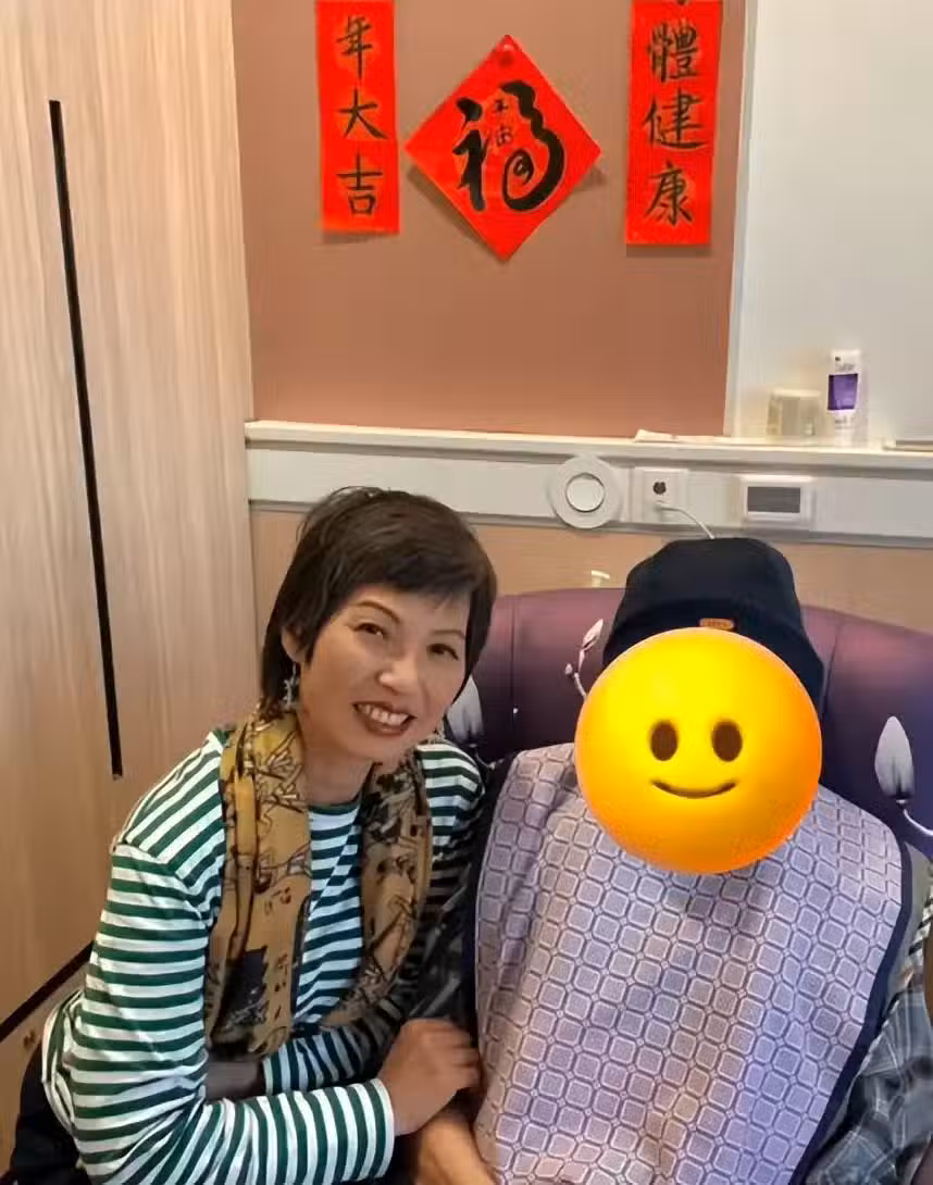 夏妙然和幾位好友唱生日歌,陪鍾景輝慶祝88歲生日,可能不想引起爭議,用表情包遮擋鍾景輝的臉。---------------------------