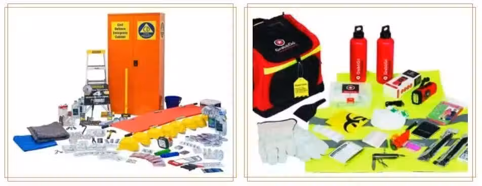 · 手電筒、收音機和備用電池。 · 防風防水的衣服,太陽帽和戶外運動的鞋子。 · 急救包和必要的藥物。 · 毯子或者睡袋。 · 寵物所需的用品,如果你有寵物的話。 · 衛生紙,大的垃圾袋。 · 防塵口罩。