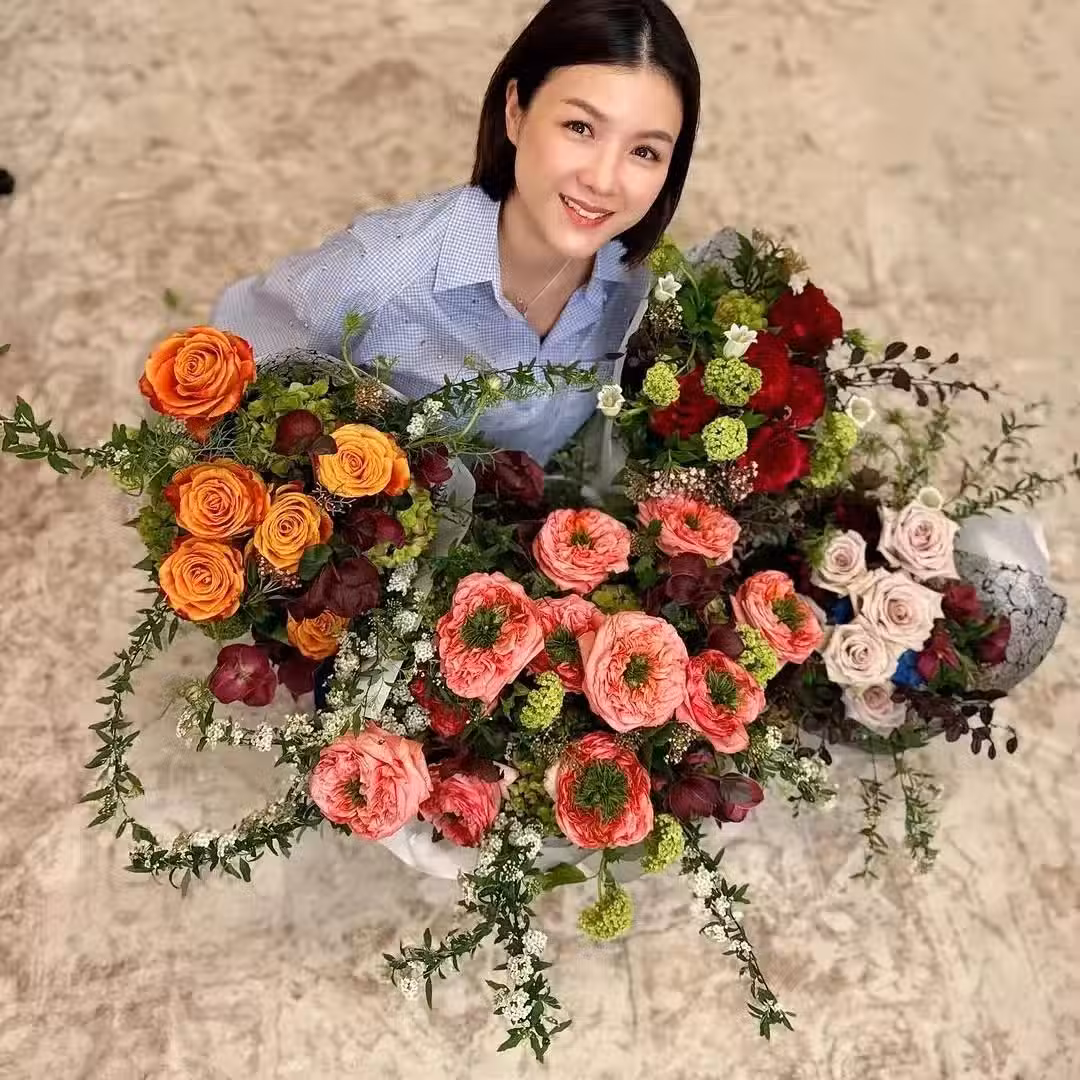 陳茵媺這次生日也收到了很多鮮花,懷裡抱著好幾大束,這被鮮花包圍著的感覺,就像是她們的家庭一樣,洋溢著滿滿幸福。