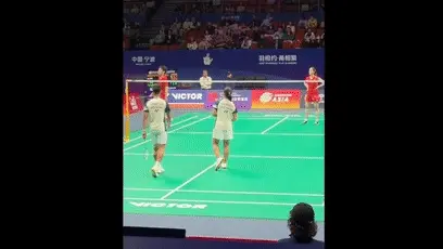 此時比分來到了18平,程星/張馳準備發接發時,主裁突然掏出一張紅牌,罰了兩人兩分,隨後又在計分器點了一下,比分瞬間變成了18-20。