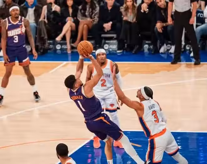 布克這番言論讓引發了太陽球迷的擔憂,他對花園球館有著強烈的歸屬感,他職業生涯在這裡打球場均可以得到31.2分3.1籃板3.6助攻1搶斷。如今的尼克斯中還有他的肯塔基隊友兼好基友——唐斯,以及他前太陽隊友布里奇斯,所以,他有理由會成為尼克斯的一員。